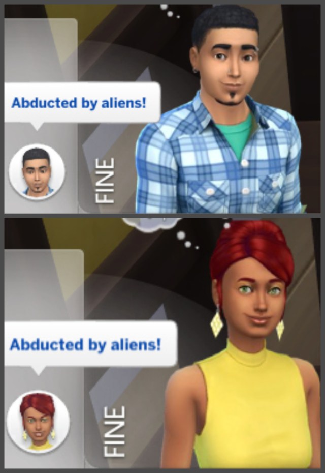 (A/N: I find it weird that neither boy has a moodlet for missing their parents or a periodic thought bubble showing either one of them. It would also have been a nice touch for the alien spaceship to grab them and go. I created the note since there wasn’t a pop-up message for this. Details, schmetails)