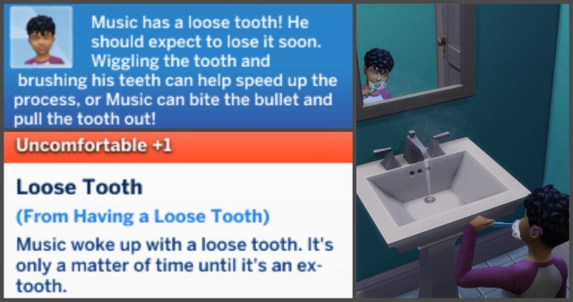 Music has a loose tooth! He runs to the bathroom and gives his teeth an extra bit of brushing.