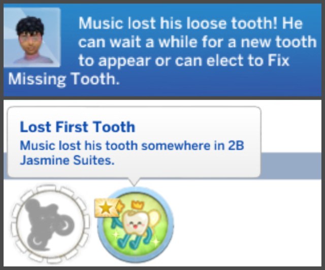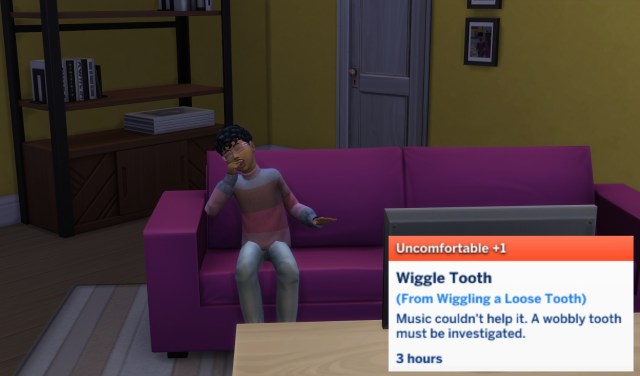 (A/N: I was hoping to see a gap in his teeth but haven’t noticed anything – I had Music takes pics of himself smiling just to check. Was a bit disappointed that there wasn’t one since friends shared pics of their Sim kiddos with them.)