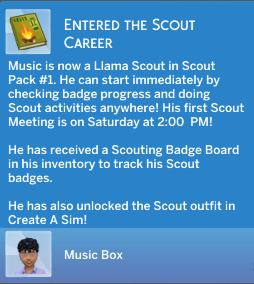 Music is now a Scout (Rank: Llama). Time to start earning some badges!
