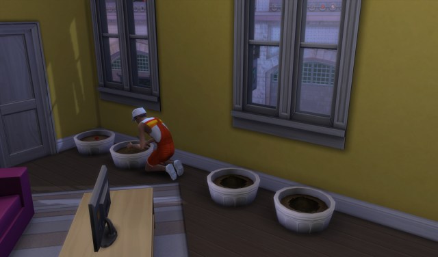 Lunch then buys some plant pots and a packet of flower seeds. He plants four snapdragon, figuring they’ll fetch a good price.