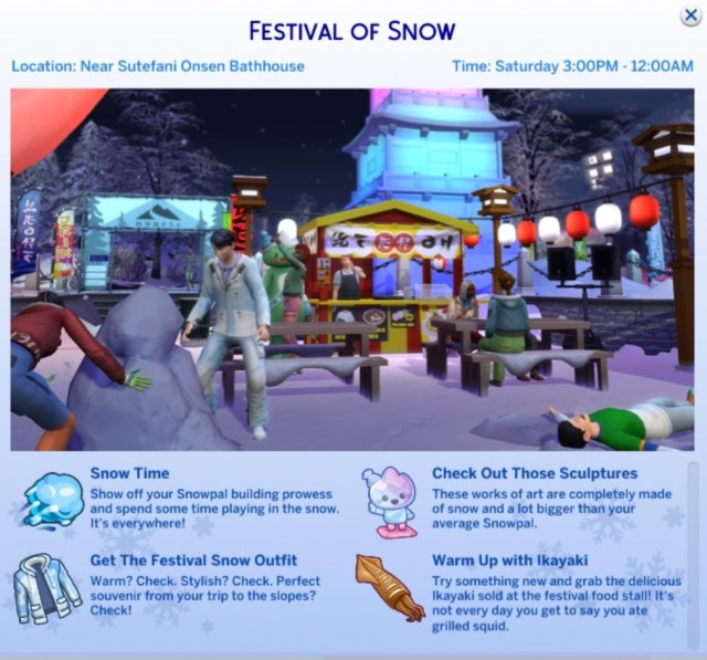 A happy (and healthy) Addy does the Mountain Move and Hip Bump with Yamachan the festival mascot in her newly purchased Festival Snow outfit.