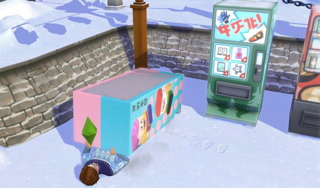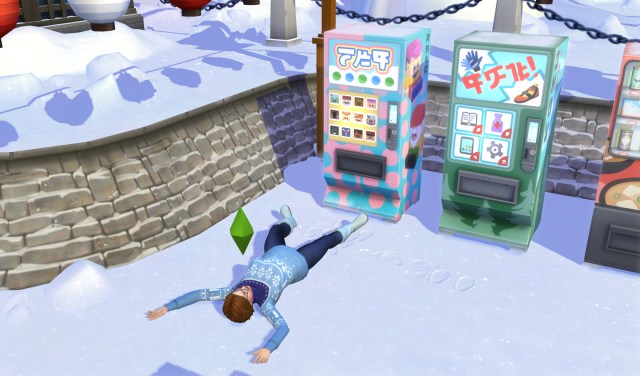 NOTE: Am glad I did. I researched this and discovered that by having her give the vending machine a shake-down twice in a row while the negative moodlet is in effect means there’s a chance of Death by Vending Machine. Yikes! We can’t have that.