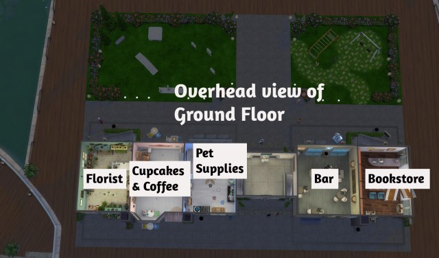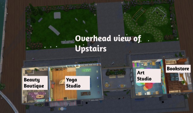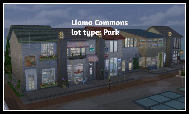 Llama Commons was built in Windenburg at the lot Bathe de Rill sits on. I don’t usually bulldoze EA-made lots but the location and size (40×30) were perfect for what I imagined. It has Sunny Aspect, Training Grounds and Natural Light as its lot traits.