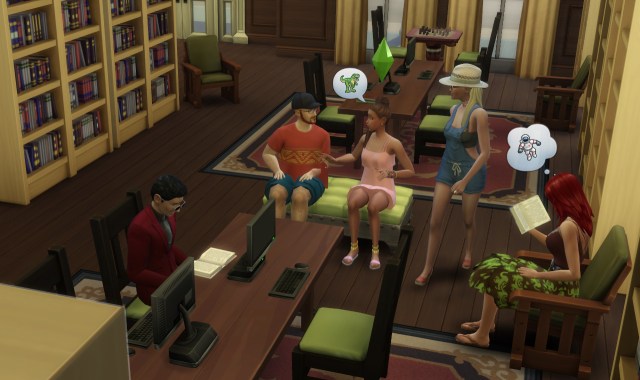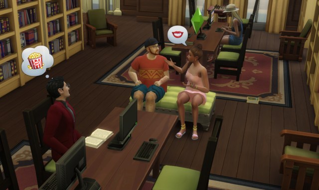 Since Farrah won’t meet anybody by staying in her apartment (NO Welcome Wagon yet), she heads over to the library to learn a skill or two while hopefully meeting other Sims.