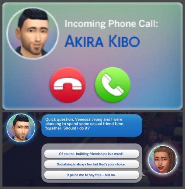 (A/N: I found that the Social Bunny app is the quickest way to turn an Acquaintance into a Friend! Spamming “Post Message” using Friendly and Funny plus Flirty if you want them to grow close in that regard plus doing the same with “Tag Sim” easily ups the relationship meter.)