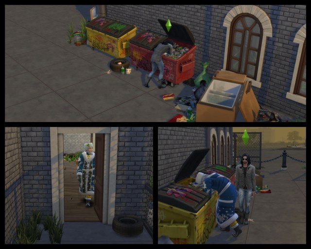 Yes! Father Winter came to the rundown lot and immediately began rummaging in the dumpster for whatever. Do his gifts for bad little sims come from here? LOL