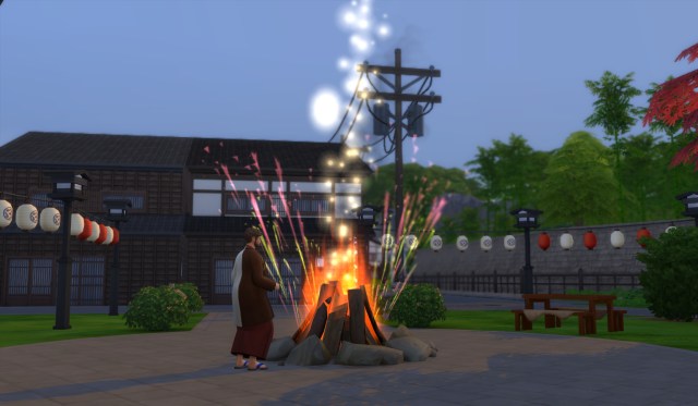 Harlem asks Kazuhiko to join him in making a wish (this will get him away from the fire for a few minutes anyway)(I was hoping we could do it with Yamachan but nope, not an option) <– I wish the Sims Team had made this a thing!