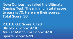 Play a game? Enter a Novice tournament? Attempt the ultimate Gaming Test? Nova’s feeling focused and goes with the Ultimate.