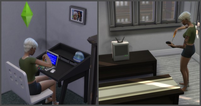 (A/N: Maybe it has something to do with her using a screwdriver and poking it here & there. Sims are a silly bunch. 😆)