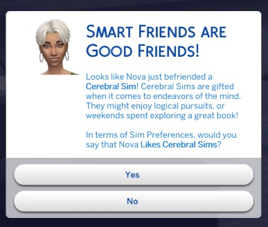 By befriending Arun, she realizes she likes Sims who use their brains.