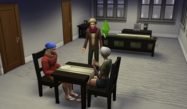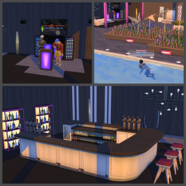 (A/N: Am beginning to wonder if there’s a problem with bartenders in the game now. The karaoke bar and now this lounge have the “hire” action greyed out and indicates there is one on the lot but … nobody shows up. I wonder if there is a way to reset the object. Will have to look into it.)