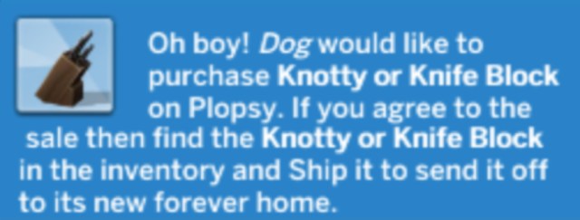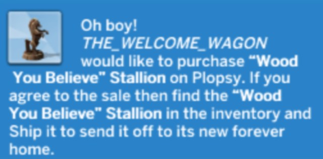Materials cost §5 and listing item on Plopsy cost an additional §5. Because of it being Excellent Quality, its value is §48. She could have easily sold it for 48 Simoleons and been done but Addy is curious about whether it could sell for more. It did. Dog is willing to pay §127 for the sculpture. Wow!